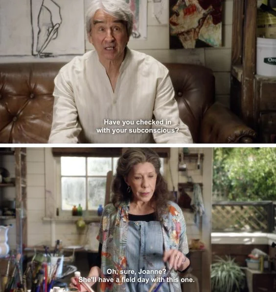 So for this week, my reminder to myself is to check in more with Joanne. Do you all watch Frankie and Grace, with Lily Tomlin and Jane Fonda? I love this show. Frankie occasionally has to check in with her subconscious, “Joanne” to know how she’s actually feeling about something versus what she's thinking about something. When I’m getting really up in my head this week, I want to remember to check in with Joanne, and check in with – what am I feeling right now? What's my stomach say about what I'm feeling in the room? So before I can say to my client, "What are you feeling as you say this, right now?" a half a step before that I am going to ask myself, "What is happening in the room right now?" and see if that can bring me a little more out of my head.